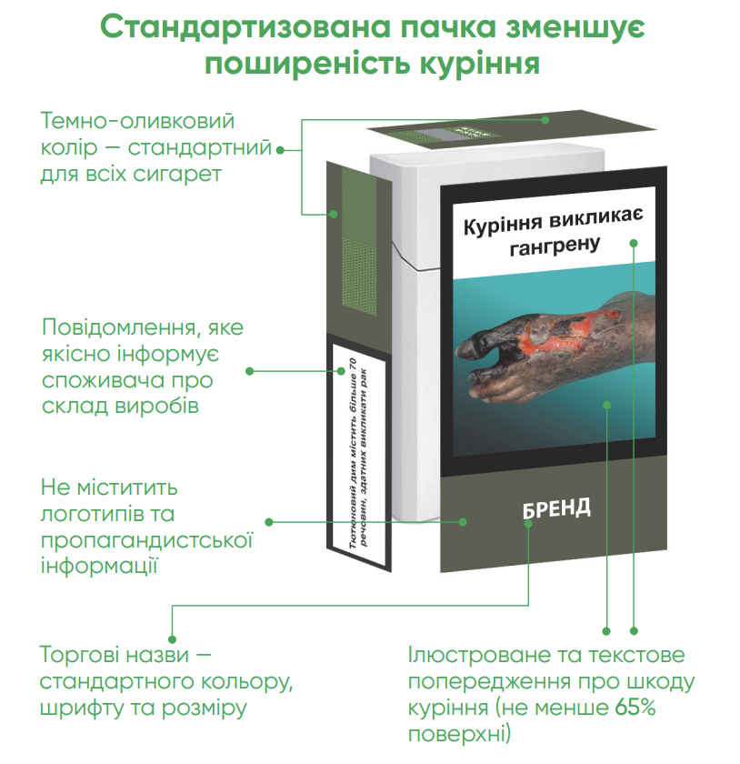 Стандартизована упаковка та медичні попередження на тютюнових виробах