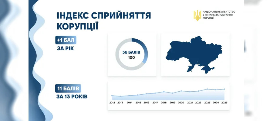 За даними Transparency International Ukraine, тепер Україна має 36 балів в ІСК. Помірний прогрес дозволив їй посісти 104-те місце в рейтингу.