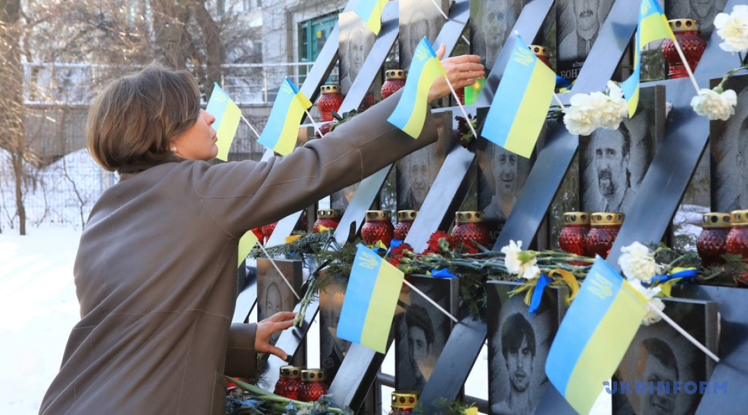 «Немає більшої любові ніж ті, хто душу свою поклав за друзів своїх. Це та любов, яка рухала героями Небесної сотні і рухає зараз нашими захисниками. Це та любов, яка піднімає тисячі людей в Україні, щоб відновлювати й відбудовувати та продовжувати боротися за країну. Сьогодні ми говоримо про дієву пам’ять», - сказала Калмикова.