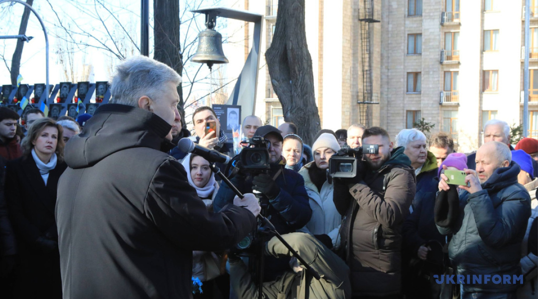 «Дуже боявся поширення демократичних ідей північний сусід. У лютому 12 років тому було здійснено агресію. І сотні самооборони Майдану прямо звідси вирушили на оборону держави. І нам з вами треба зробити все можливе, щоб те, заради чого було принесено такі великі жертви – було не дарма. Треба зробити все можливе, щоб зберегти єдність країни, бо завдяки єдності ми втримали Україну в 2014-му і захистили її в 2022-му. І зараз – загрози не менші», - зазначив Порошенко.