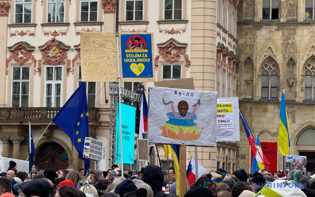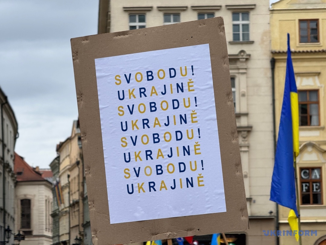 Кілька тисяч людей зібралися на Староміській площі з прапорами Чехії та України та плакатами.