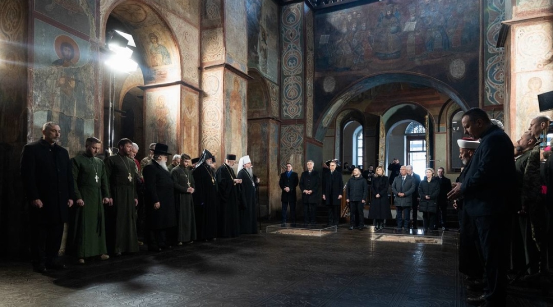 За участі Президента Володимира Зеленського, першої леді та зарубіжних гостей у Софійському соборі відбулися заходи до четвертої річниці повномасштабного вторгнення.