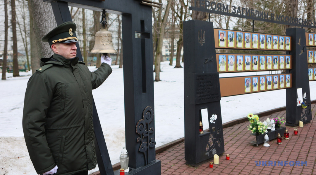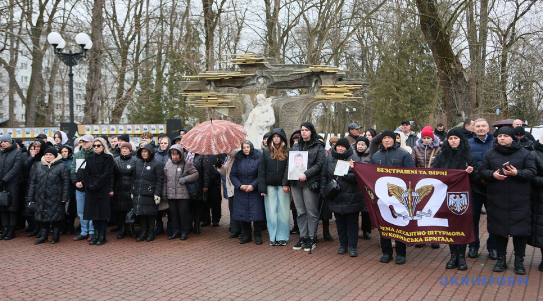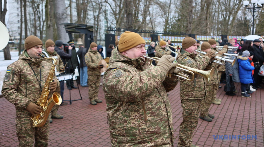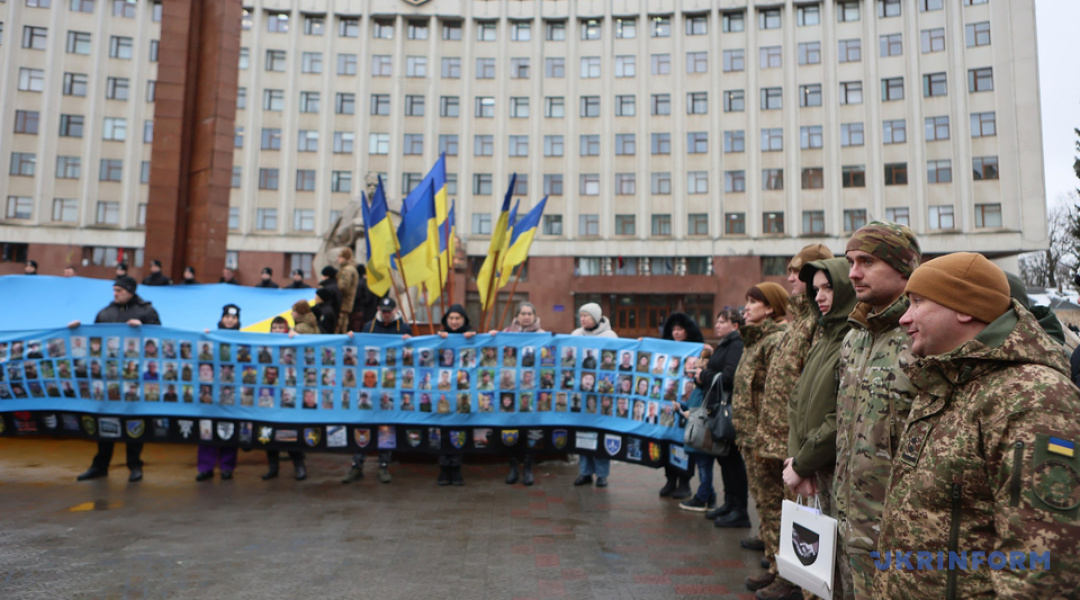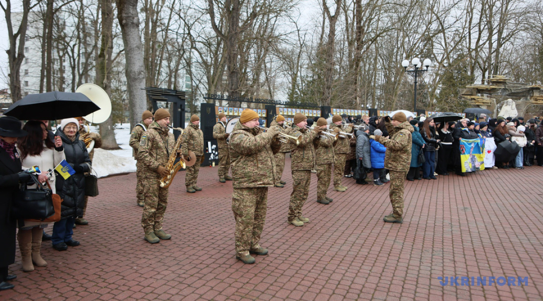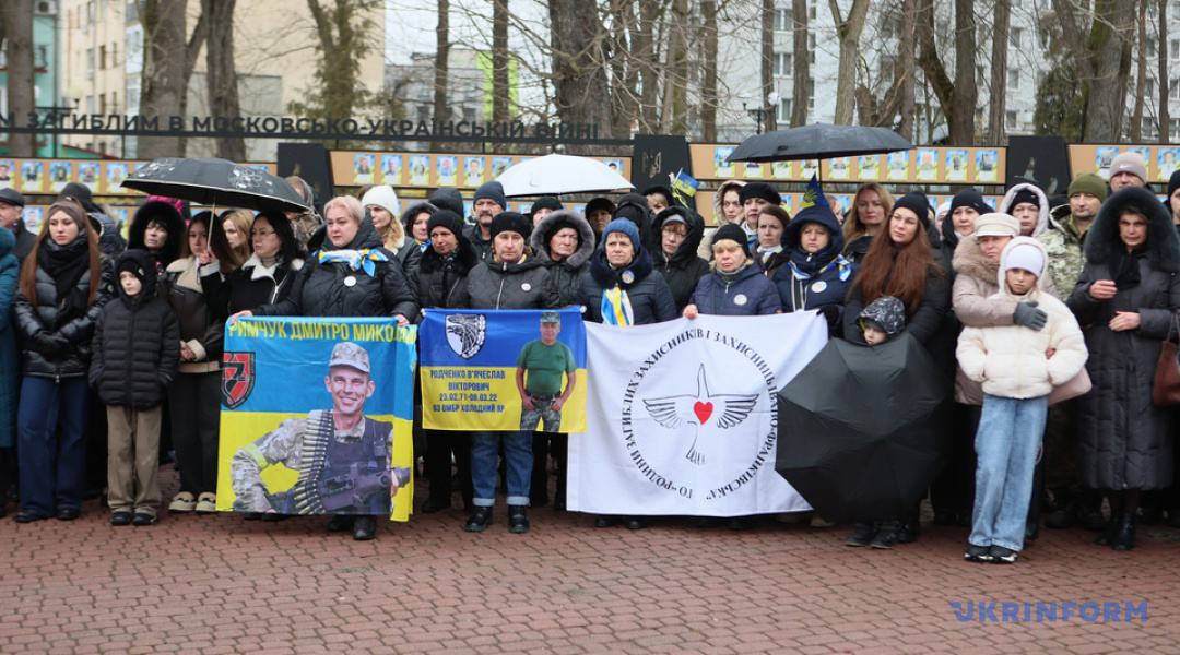 У Меморіальному сквері в Івано-Франківську відбулася також акція "Дзвін пам'яті". На ній вшанували полеглих у російсько-українській війні військовослужбовців . На заході рідним загиблих бійців передали державні нагороди.