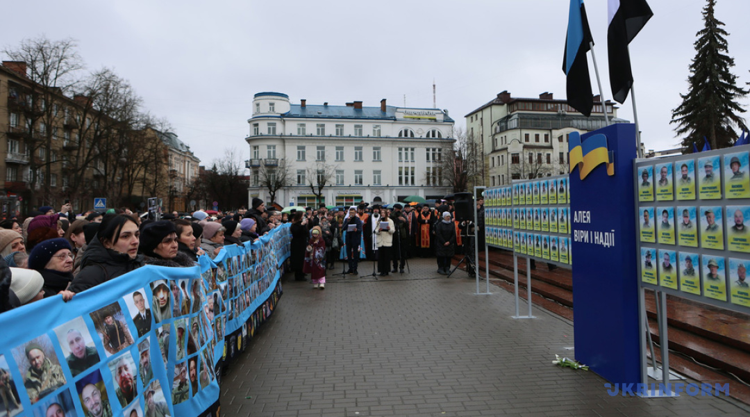 В Івано-Франківську відкрили Алею віри і надії, де на спеціальних стендах розміщені портрети захисників, які зникли безвісти або перебувають у полоні.