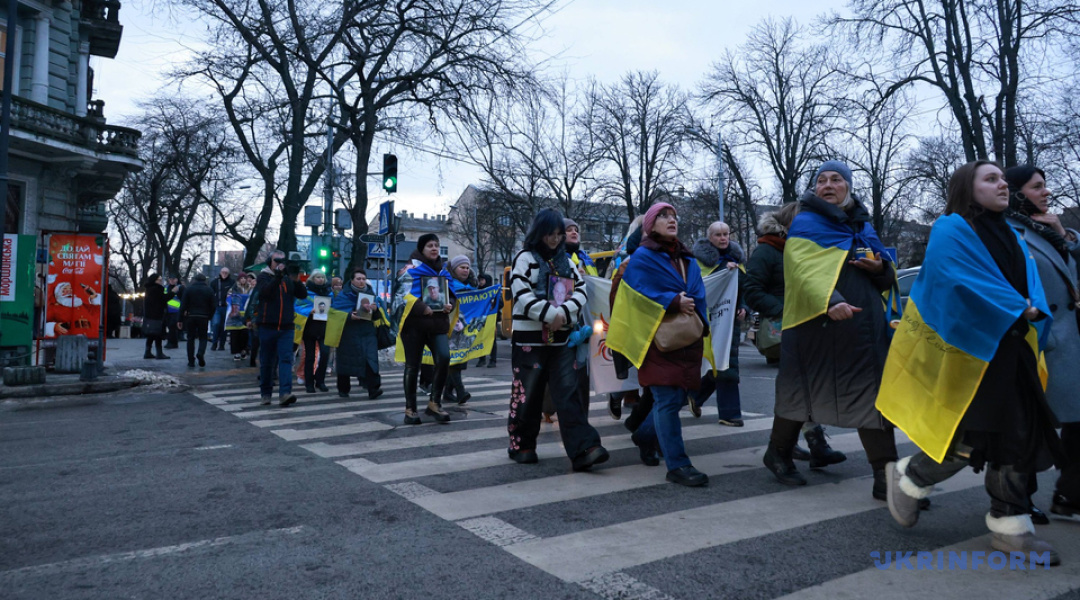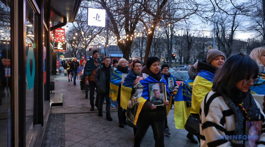 Серед учасників маршу було багато членів сімей українських полонених. Активісти вигукували лозунги із закликами зупинити Росію та змусити Кремль звільнити бранців.