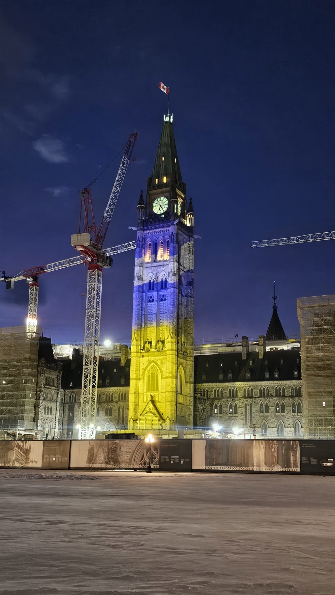 Парламент Канади підсвітили жовтим і синім на знак солідарності з Україною