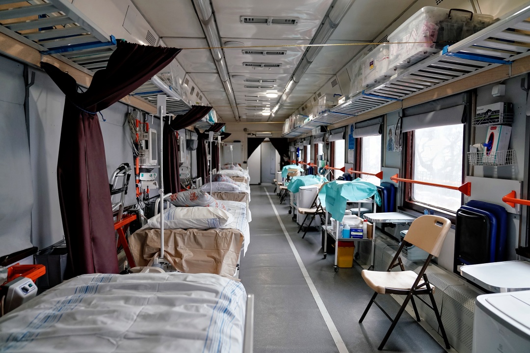 Європейці оглянули також медичний вагон для евакуації поранених військових — фактично рухому реанімацію з ШВЛ, киснем, кардіомоніторами та можливістю проводити операції під час руху.
