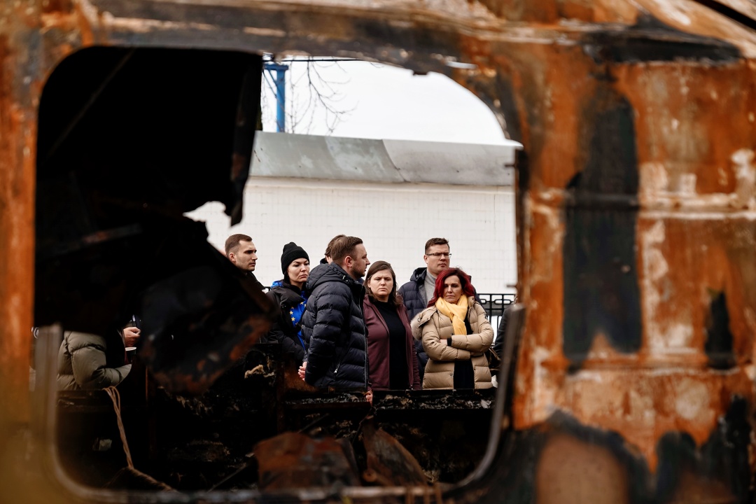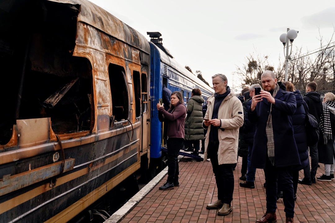 Європейським парламентарям показали зруйнований пасажирський вагон, по якому 27 січня російські війська завдали удару. У той день ворог атакував безпілотниками пасажирський поїзд сполученням «Барвінкове — Львів — Чоп» у Харківській області. Поїзд був уражений трьома дронами-камікадзе. Внаслідок російського удару загинули шестеро мирних людей. На борту поїзда перебував 291 пасажир.