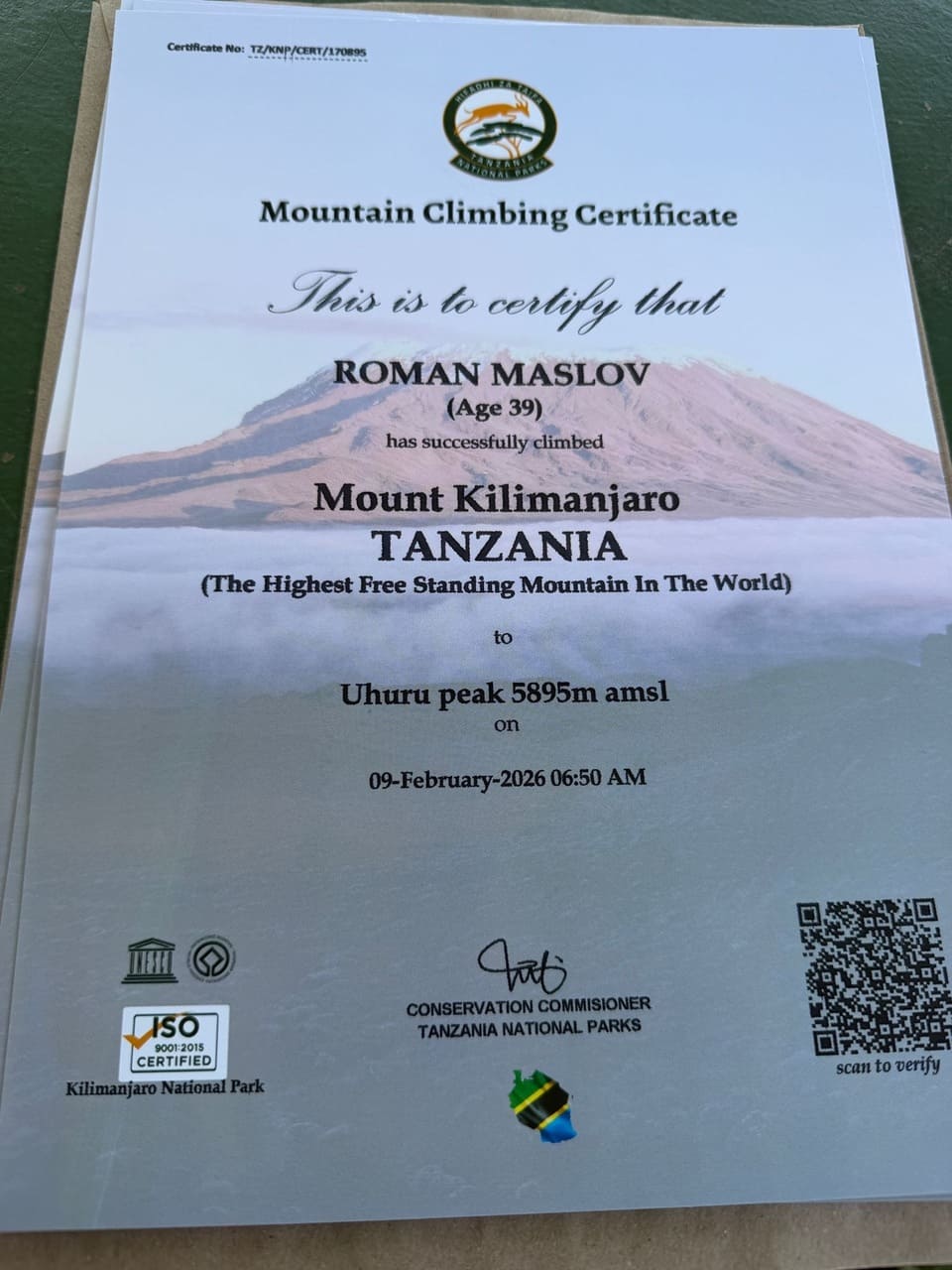 "У лютому 2026 року було зафіксовано досягнення, що поєднало в собі неймовірну фізичну витривалість та патріотизм. Український підприємець, інвестор та атлет Ironman Роман Владиславович Маслов здійснив успішне сходження на пік Ухуру - найвищу точку гори Кіліманджаро на висоті 5895 метрів", - йдеться у дописі.