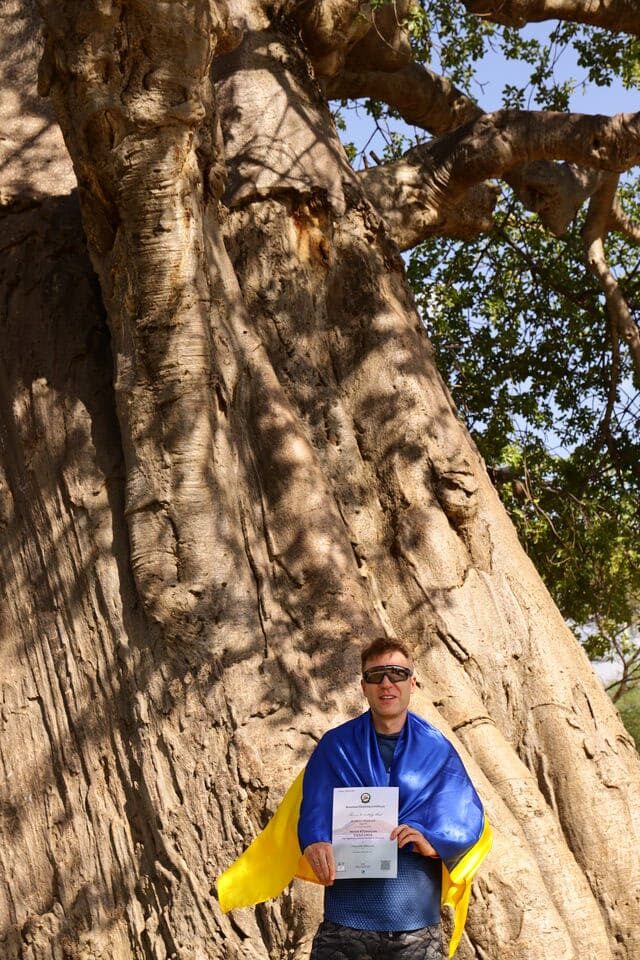 Як уточнюють, полотно розміром 3х4,5 м було розгорнуте на «даху Африки», що вимагало від атлета особливої концентрації в умовах високогір’я.