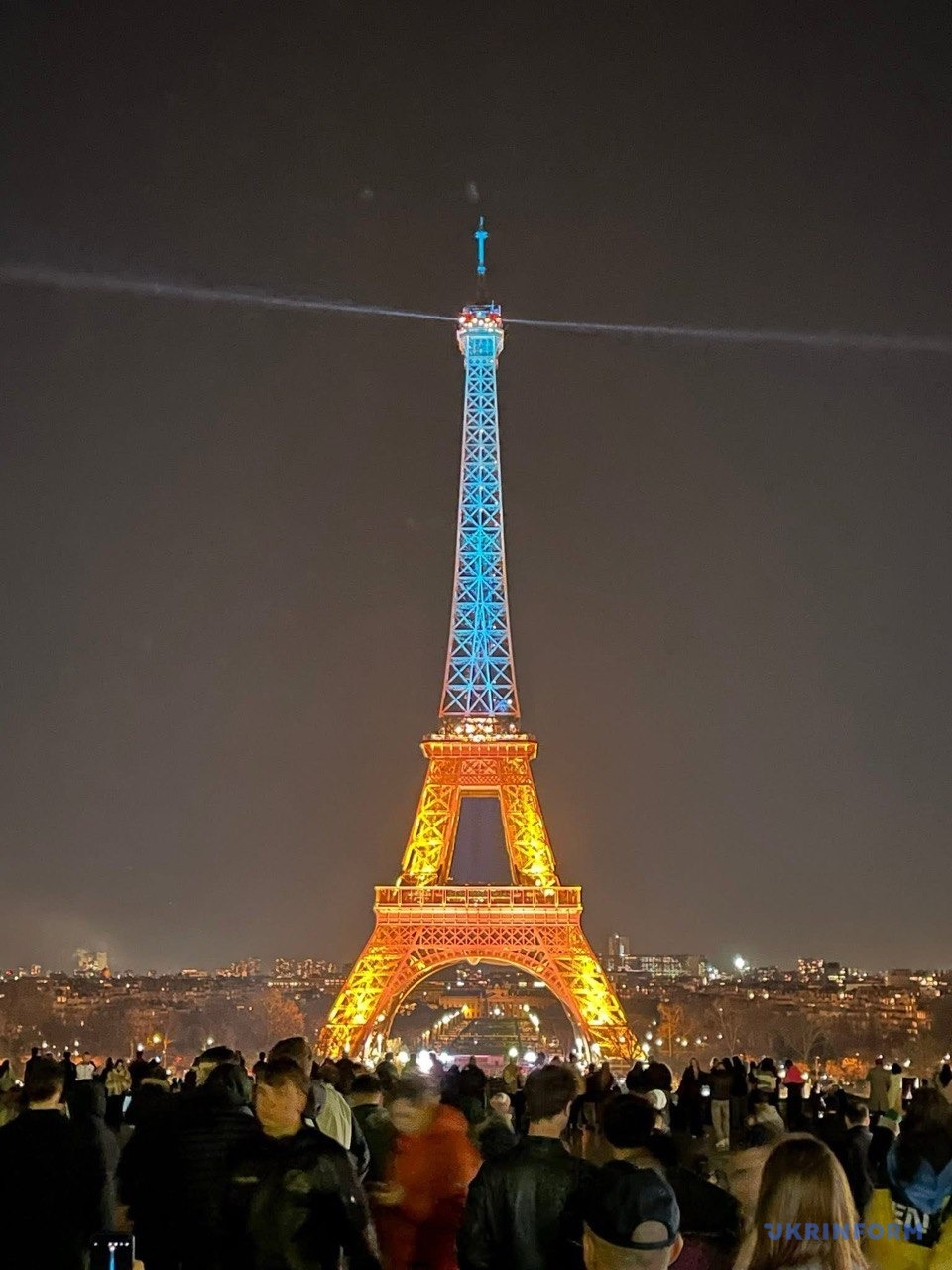 У Франції підсвітили жовто-блакитними кольорами Ейфелеву вежу та Палац Європи