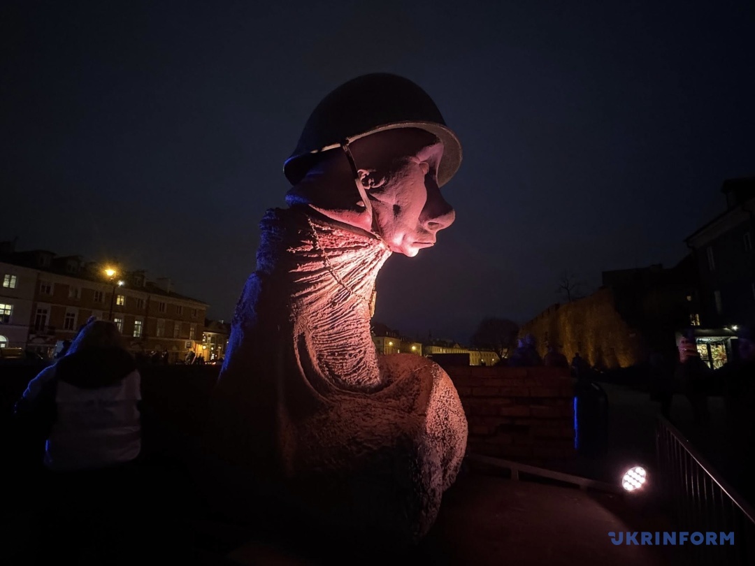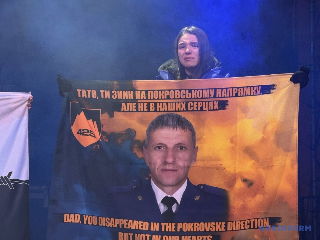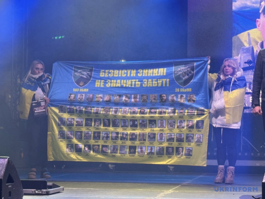 Після його виступу буде оголошено хвилину мовчання, під час якої на екрані демонструвалися світлини загиблих українських воїнів, а учасники підняли запалені ліхтарики своїх телефонів, створивши символічне світло пам’яті над площею. На сцені були також прапори з фотографіями військовополонених і чорно-білий «Прапор Надії», створений у 2025 році як символ підтримки полонених і зниклих безвісти. Білий колір означає надію на повернення, чорний — біль і страждання неволі. Прапор нагадує, що боротьба за кожного з них триває і є знаком солідарності з їхніми родинами.