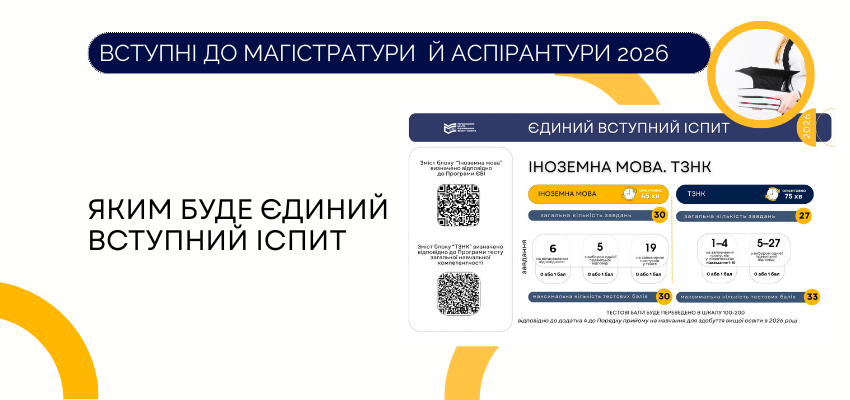 Як повідомляв Укрінформ, у 2026 році основні сесії вступних іспитів до магістратури проходитимуть з 26 червня до 14 липня, додаткові – з 3 до 21 серпня. Основні сесії вступних іспитів до аспірантури триватимуть протягом 14—29 липня, додаткові – 24—28 серпня.