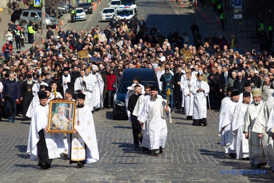 У Михайлівському Золотоверхому монастирі зранку 22 березня предстоятель Православної церкви України митрополит Епіфаній відслужив заупокійну літургію. Попрощатися прийшли сотні людей.