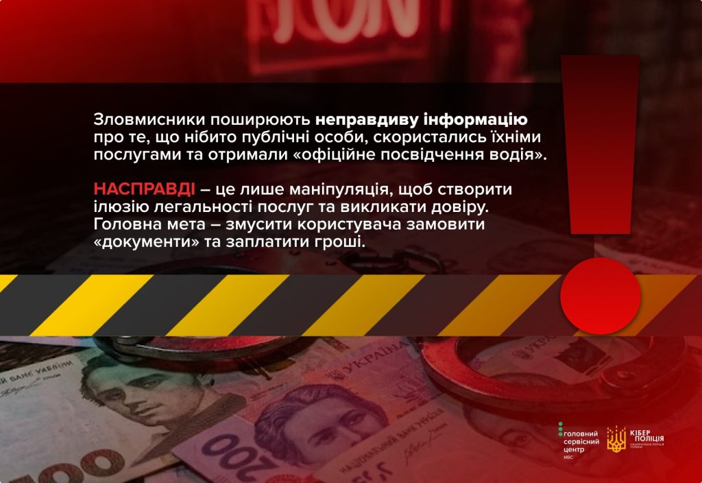 А саме - вони масово створюють фейкові акаунти, які видають за офіційні ресурси, щоб викликати довіру у людей, і поширюють неправдиву інформацію про те, що нібито публічні особи скористались їхніми послугами та отримали “офіційне посвідчення водія”.