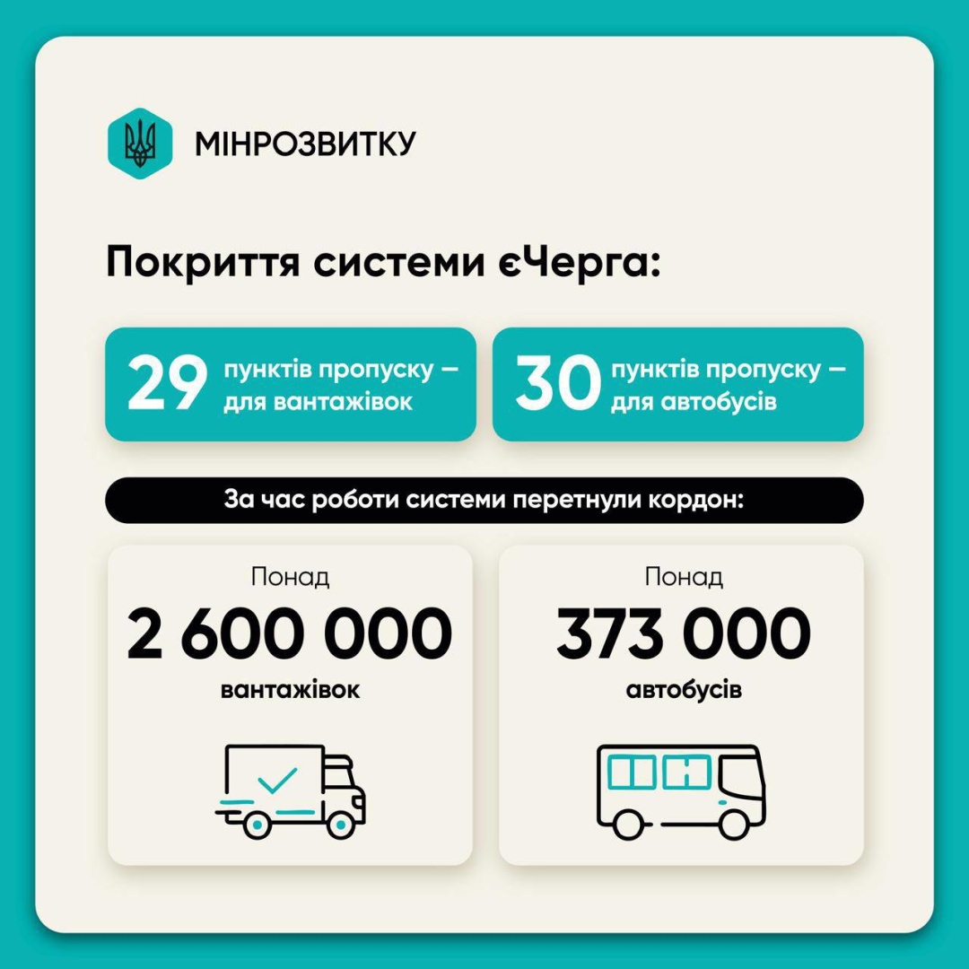 Кулеба зауважив, що за час роботи системи кордон за попереднім записом перетнули понад 2,6 млн вантажівок та більш ніж 373 тис. автобусів.