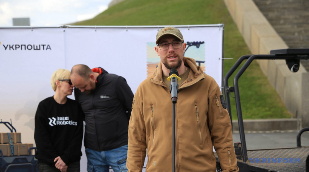 Погашення марки відбулося у Києві за участю представників Укрпошти, виробників наземних роботизованих комплексів (НРК) і військових, повідомляє кореспондент Укрінформу.