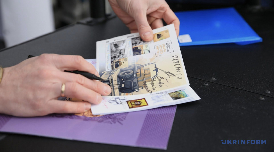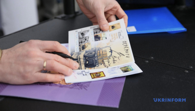 Представники Укрпошти, разом із виробниками НРК і військовими, урочисто погасили марку «Роботи рятують життя».