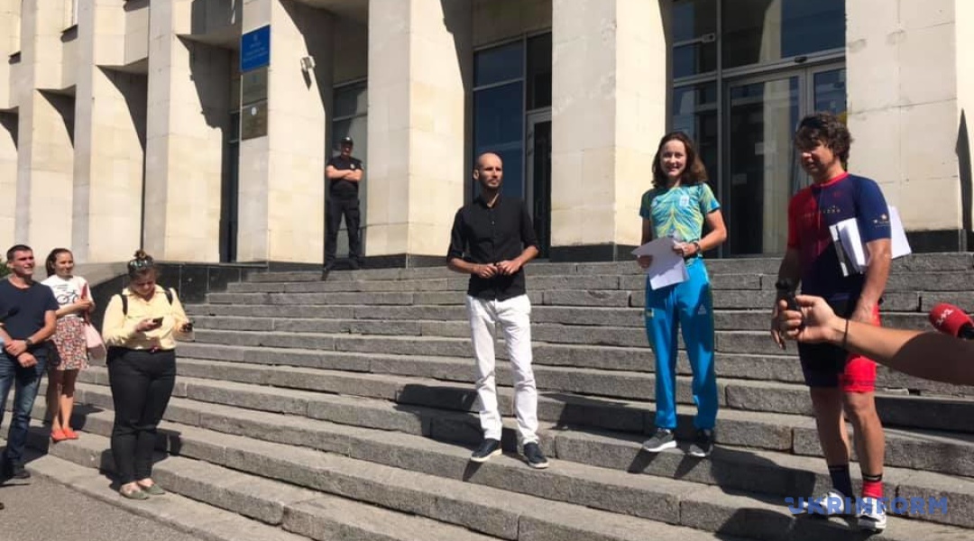 У Києві під стінами Міністерства молоді і спорту пройшла акція «Геть Башенка» на підтримку переможниці Європейський ігор-2019 у Мінську Ганни Соловей. Про це повідомляє кореспондент Укрінформу.