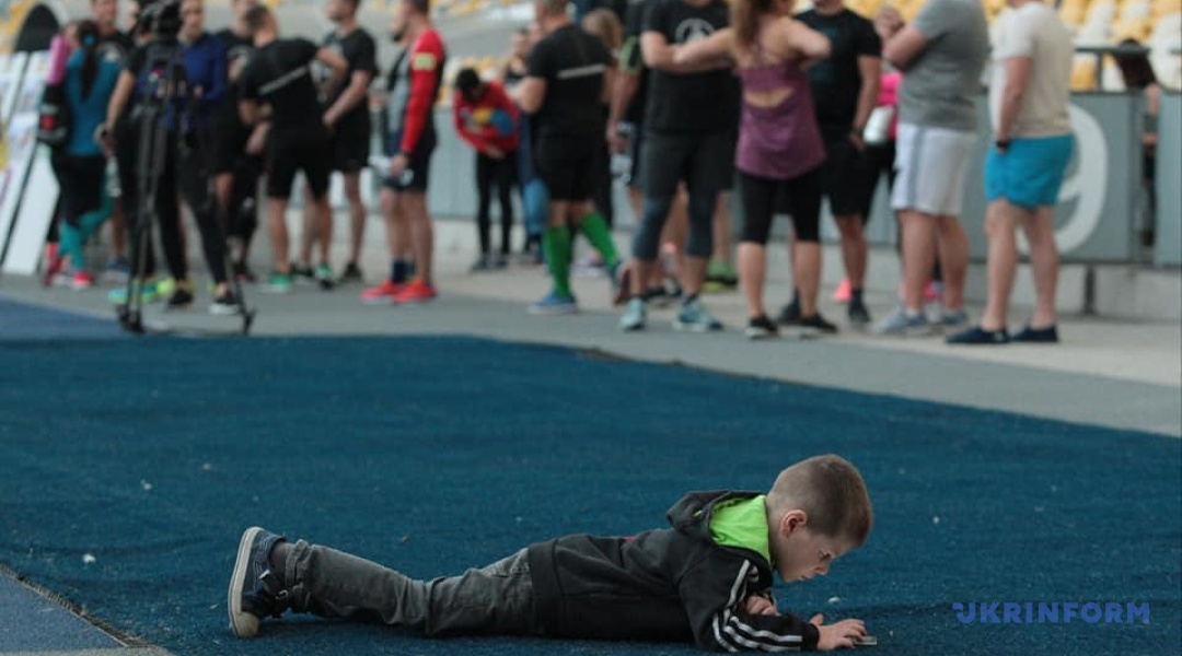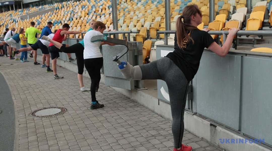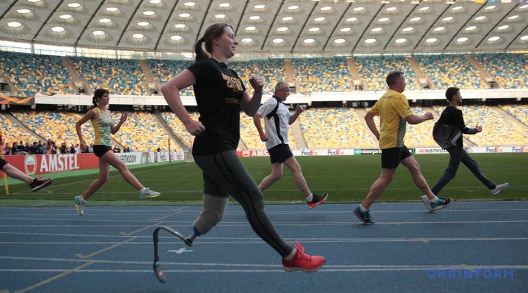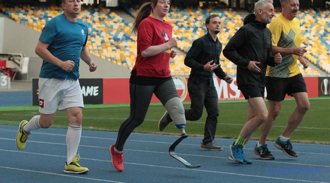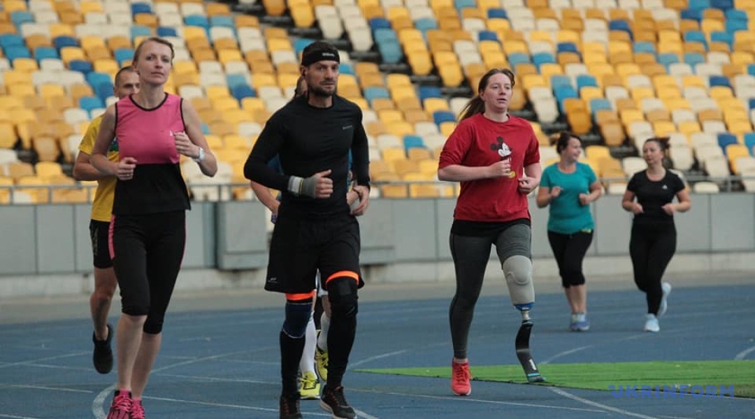 Сьогодні в Києві на НСК «Олімпійський» відбулося відкрите спільне тренування ветеранів АТО, які отримали поранення та каліцтва під час війни, з видатними українськими легкоатлетами. Про це повідомляє Укрінформ.