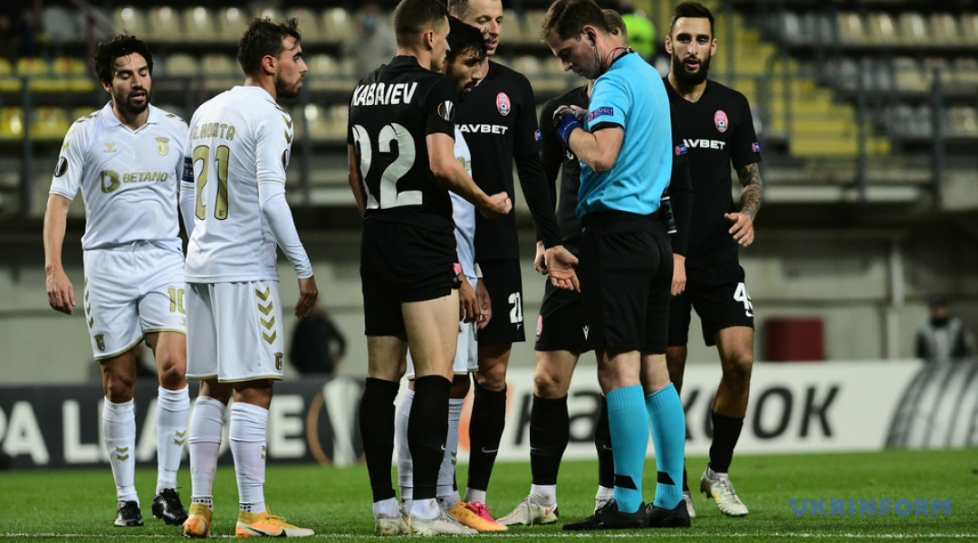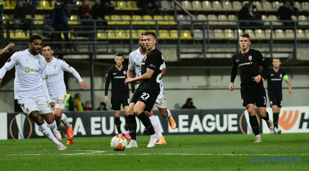 Матч на "Славутич-Арені" в Запоріжжі завершився з рахунком 2:1 на користь "Браги", повідомляє Укрінформ.
