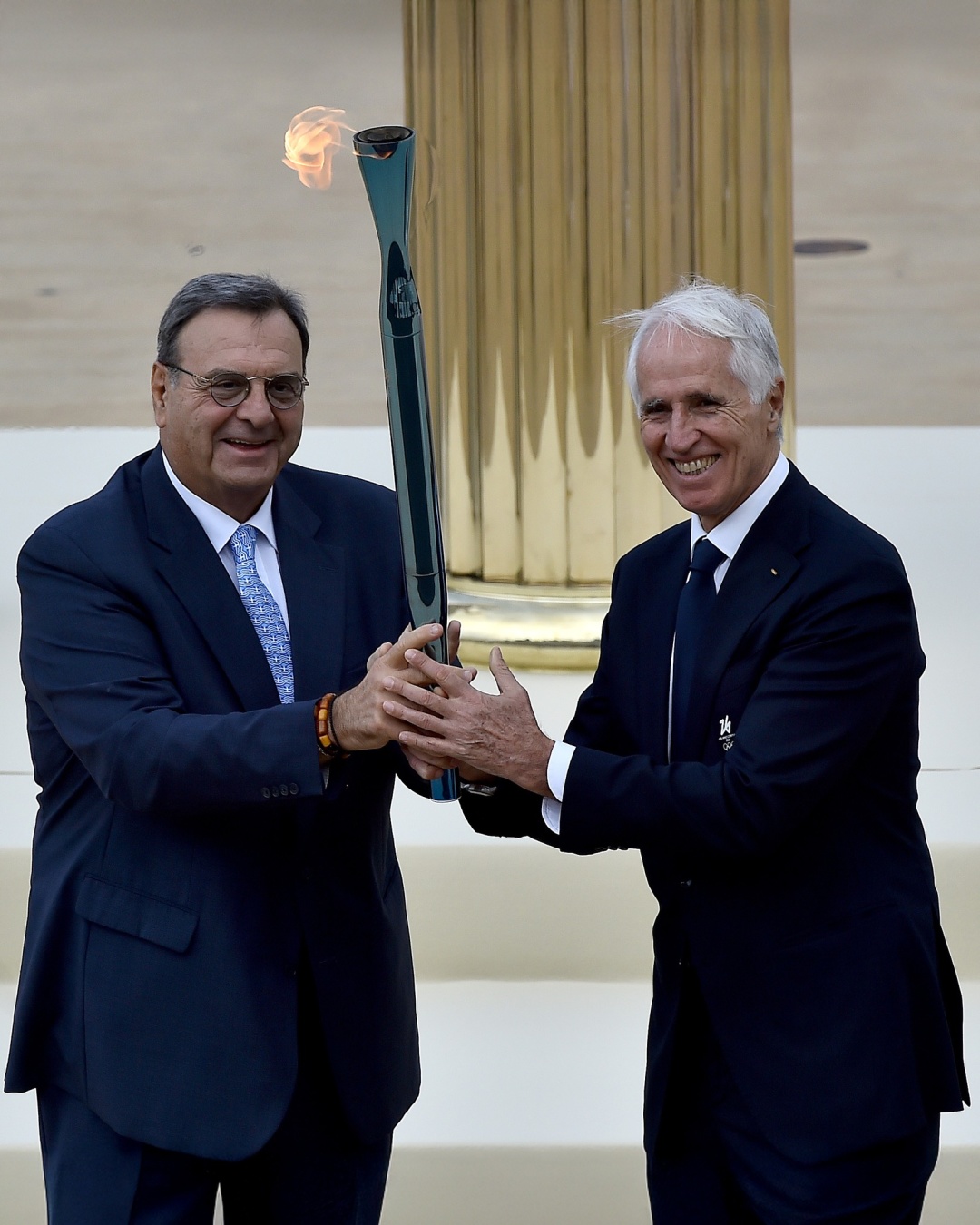 Керівник організації Ігор Мілан-Кортіна, член Міжнародного олімпійського комітету (МОК) Джованні Малаго отримав вогонь на великому мармуровому стадіоні Панатінаїко в присутності лише кількох офіційних осіб та глядачів через погодні обмеження.