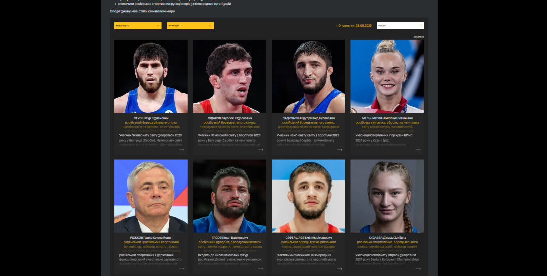 Як повідомляв Укрінформ, у березні на порталі War&Sanctions оприлюднили інформацію ще про шістьох російських спортсменів – учасників війни проти України.