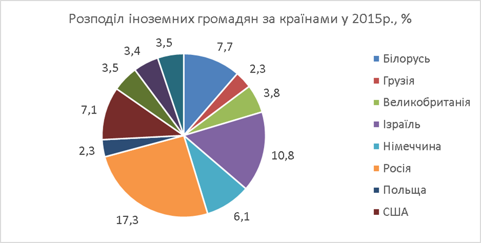 Проведено аналіз потоків іноземних громадян, які в'їжджають до Києва згідно з даними Державної прикордонної служби України. Більше всього відвідують Україну росіяни, білоруси та ізраїльтяни. Тараненко спростував свій попередній коментар: "Ця діаграма показує скільки до нас прибуває іноземних громадян цілому, а не конкретно у туристичних цілях. Але з упевненістю можна ствержувати, що більша доля відсодку все ж таки припадає на туризм".