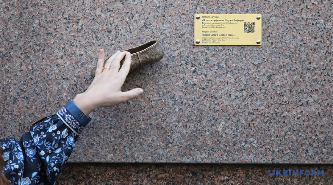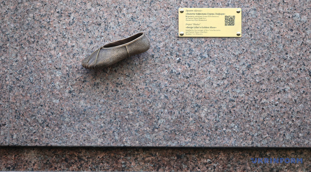 Золота туфелька Сержа Лифаря – шістнадцята міні-скульптурка проекту «Шукай!». Про це повідомила автор проекту Юлія Бевзенко на своїй сторінці у Фейсбук.