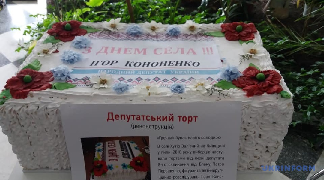 За словами Думанської, до Житомира привезли дві цікаві інсталяції. Одна із них – "Депутатський секонд-хенд" – нагадує про одного народного депутата, який роздавав вживані речі у приміщення селищної ради на Київщині, скориставшись благодійним фондом. Інша інсталяція називається "Депутатський торт" – це метровий торт від народного депутата Ігоря Кононенка, з яким він приїздив на день села.