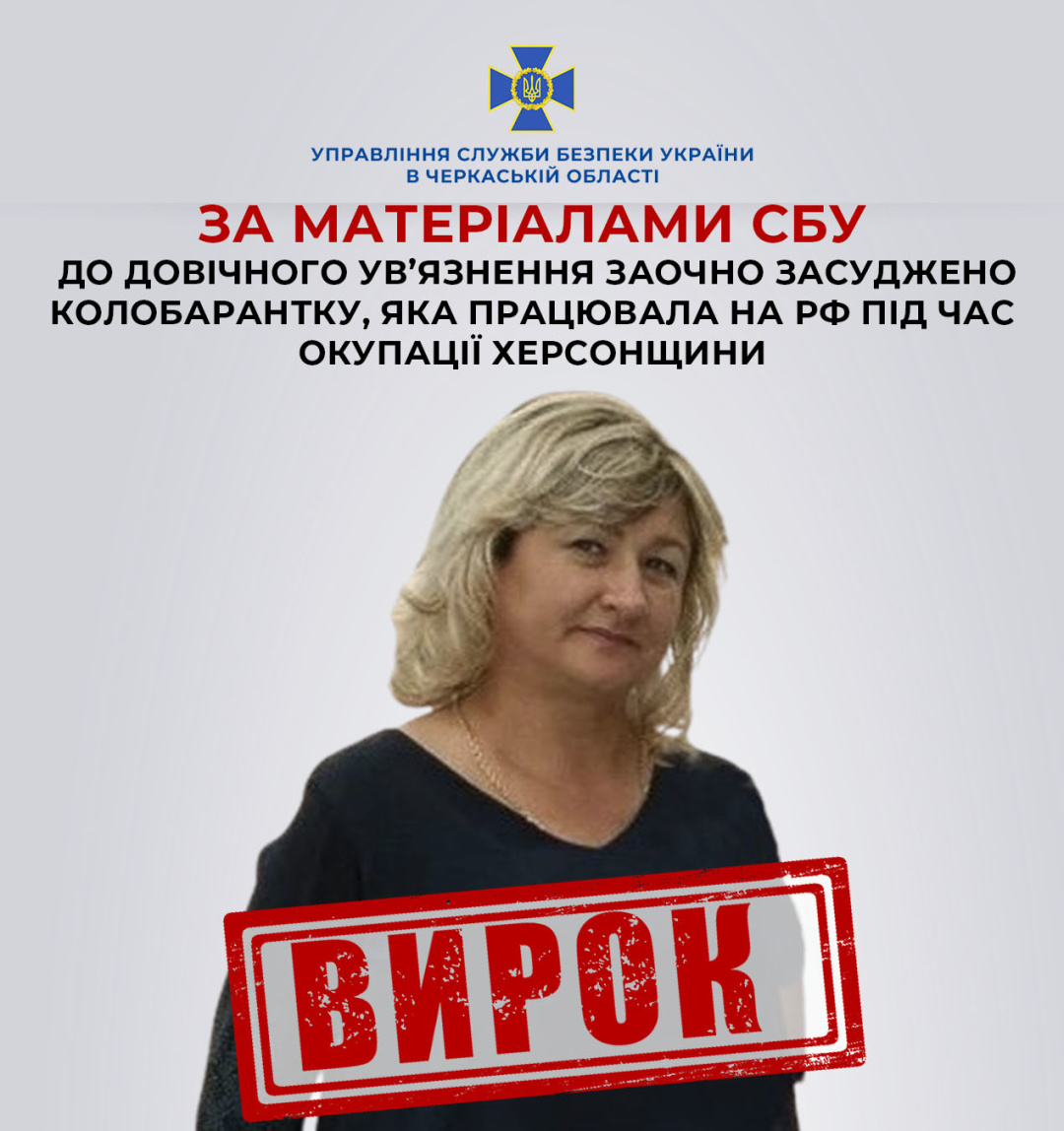 «Завдяки доказовій базі Служби безпеки до довічного ув’язнення заочно засуджено зрадницю, яка пішла на співпрацю з РФ у Херсонській області. Колаборантка обіймала «керівну» посаду в окупаційній адміністрації захопленої Новотроїцької ОТГ. За даними слідства, в травні 2023 року вона, як самовисуванець, подала свою кандидатуру на зайняття посади «старости сіл», - ідеться в повідомленні.
