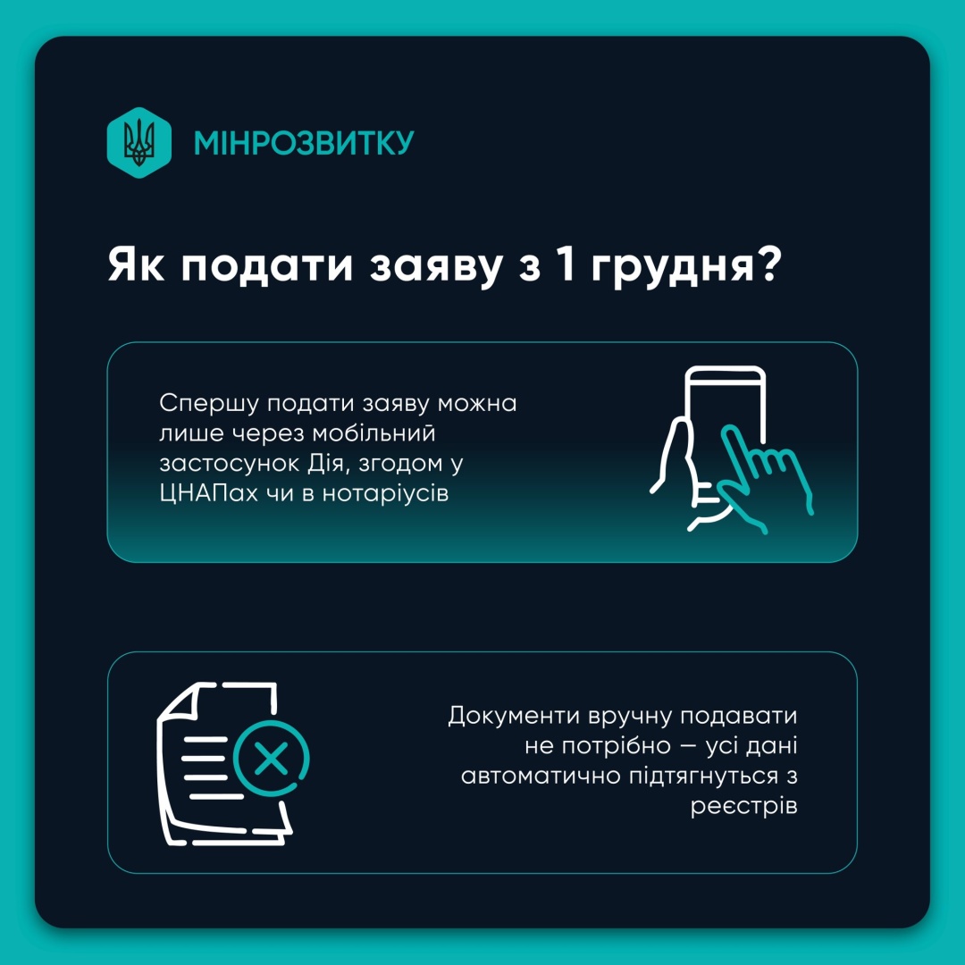 «Новий компонент єВідновлення запрацював у застосунку «Дія». Відсьогодні українці, які мають статус учасників бойових дій або статус осіб з інвалідністю внаслідок війни, зможуть подати заяву через додаток», - йдеться в повідомленні.