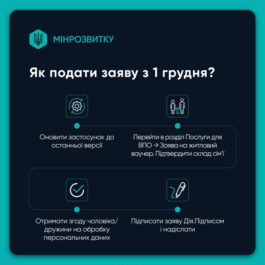 На першому етапі подати заяву можуть люди, які мають статус ВПО, статус учасника бойових дій або особи з інвалідністю внаслідок війни (незалежно від того, чи отримали його після повномасштабного вторгнення, чи під час АТО/ООС, починаючи з 2014 року).