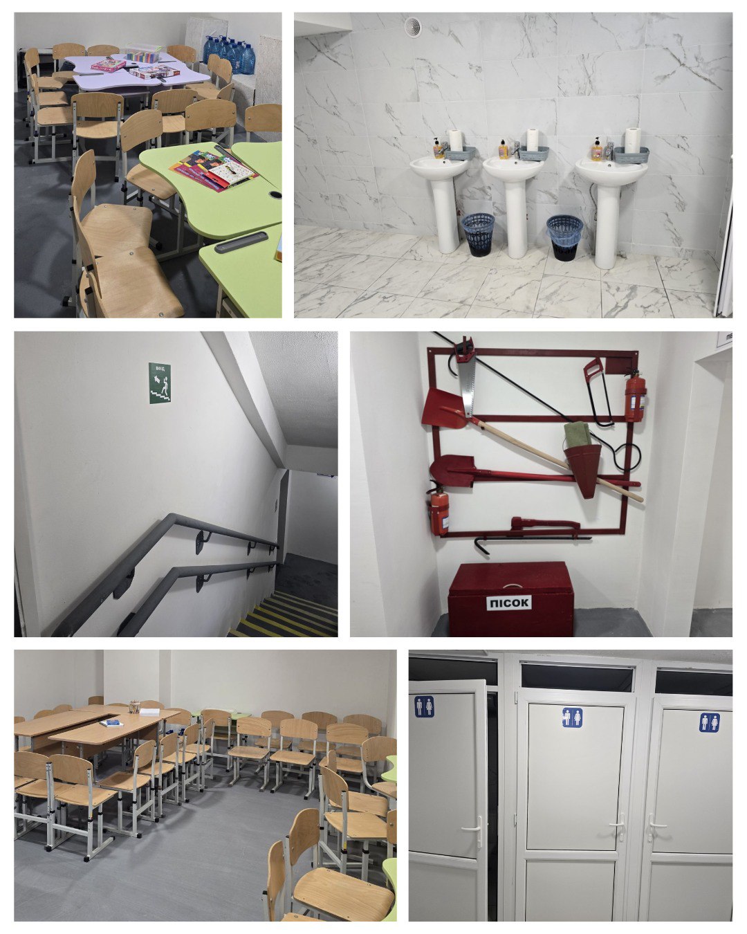 Зазначається, що укриття обладнано всім необхідним для комфортного та організованого перебування. Тут встановили санвузли, підготували парти та робочі місця для занять, забезпечили запас води та інші базові умови, що дозволяють проводити навчальний процес у захищеному середовищі.