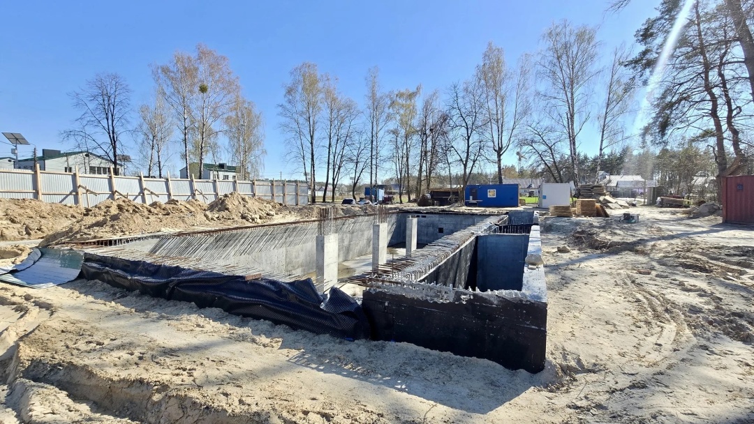 "Наразі на об’єкті триває будівництво -1 поверху, який слугуватиме укриттям. Проводимо монтаж опалубки та в’язку арматури для влаштування фундаменту. Частково проведені роботи з благоустрою прилеглої території. Встановлено колонку та альтанку бювету", - деталізували у відомстві.