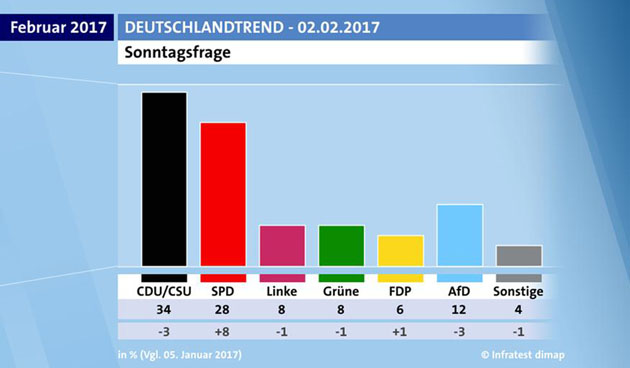 Думка громадян відбиває загальну тенденцію, однак голосувати за майбутнього главу уряду будуть не вони, а обрані ними 24 вересня 2017 депутати бундестагу. Тому важливіша тут підтримка партій – канцлером буде представник тієї, яка набере більшість у майбутньому парламенті.