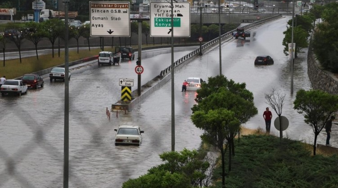 Увечері в Анкарі пройшли проливні дощі, рекордна кількість опадів випала в районах Етімесгут та Чанкая.