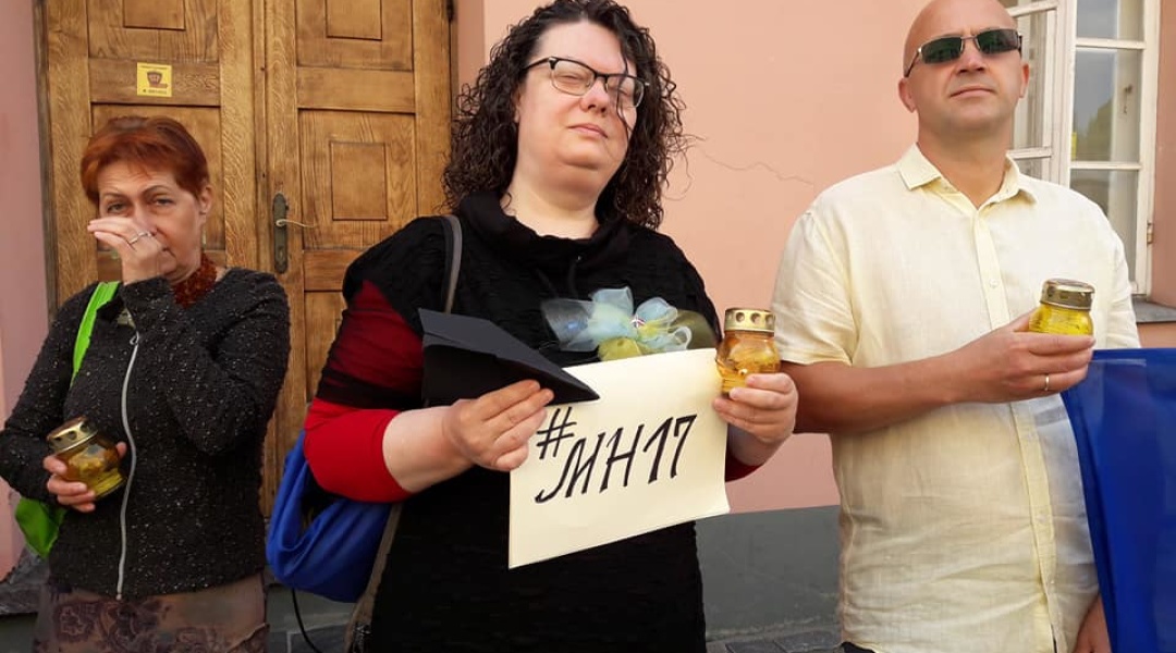 "Ми сьогодні прийшли до посольства Нідерландів. Запалимо свічки і схилимо голови перед пам'яттю 298 пасажирів літака, які загинули п'ять років тому у небі над Україною", - сказала українська активістка у Латвії Тетяна Лазда.