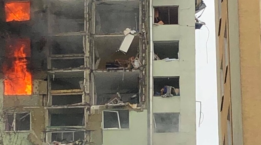 Зазначається, що у середині будівлі ще знаходяться заблокованими люди.