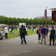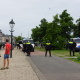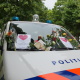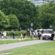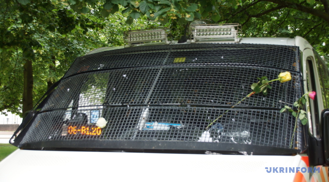 Частина мітингарів почала покидати парк Малівельд, прикрашаючи автівки поліцейських квітами та наліпками з нагадуванням про те, що у травні в Міннеаполісі після жорсткого затримання поліцейським помер афроамериканець Джордж Флойд.