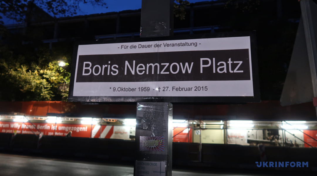 На «Площі Бориса Нємцова», яка з’явилася на алеї Унтер-ден-Лінден на тиждень, встановлено його портрет, а також портрети жертв російських спецслужб, яких було вбито, або зроблено спробу вбити як на території Росії, так і за кордоном – в Україні, Великобританії, Африці, Німеччині тощо.