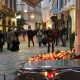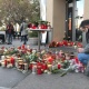 Місця, де кулі нападника влучали у мирних громадян, все ще видно по позначках криміналістів на бруківці та асфальті. Зараз вони вже майже повністю заставлені сотнями свічок, вінків та квітів.