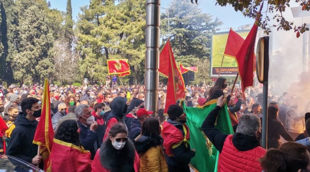 Демонстранти принесли з собою чорногорську державну символіку та кричали «Зрада», а також різні образливі фрази в бік уряду країни.
