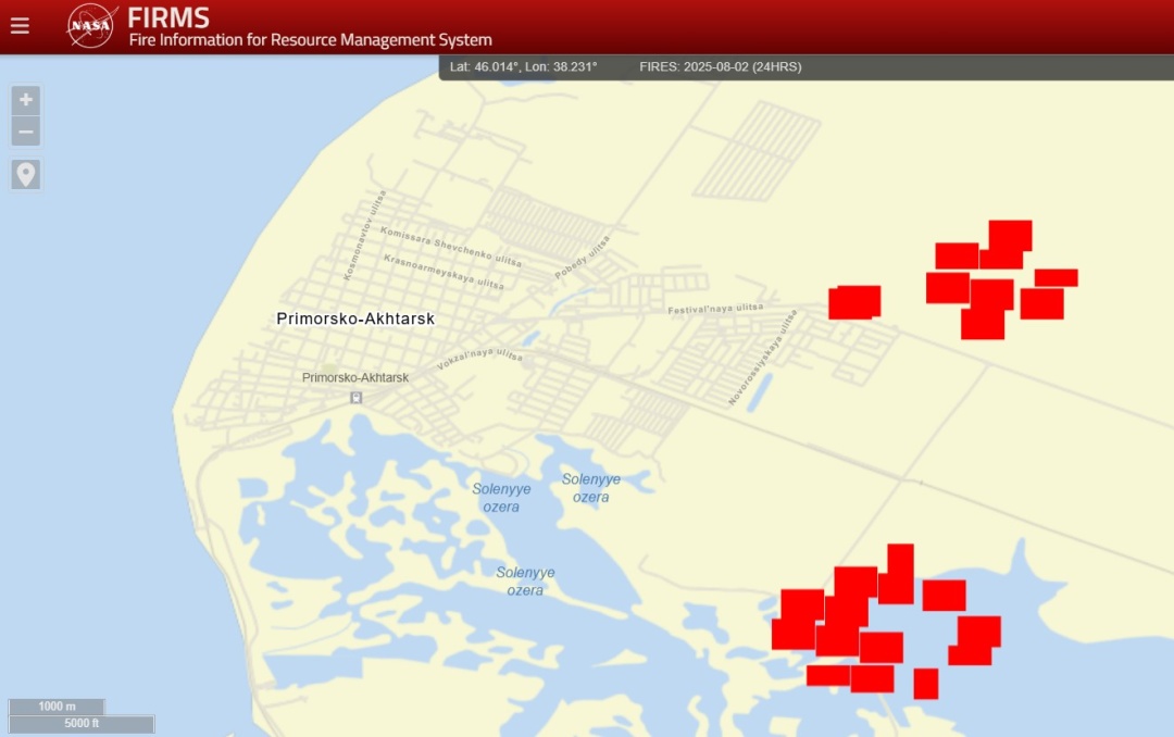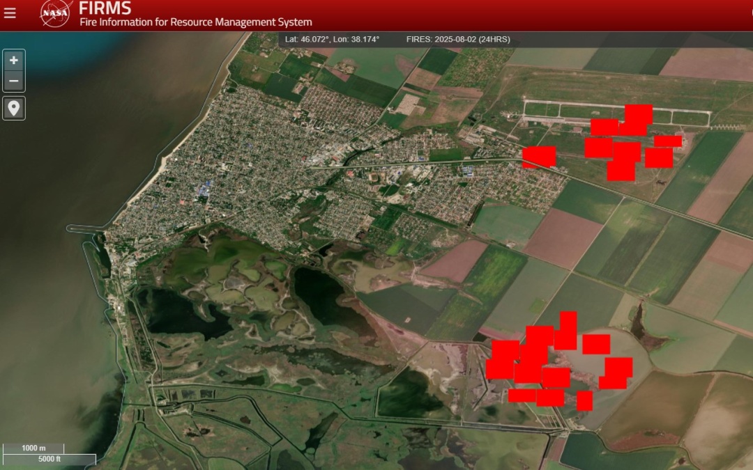 Супутники NASA зафіксували пожежі на ураженому СБУ аеродромі у Приморсько-Ахтарську