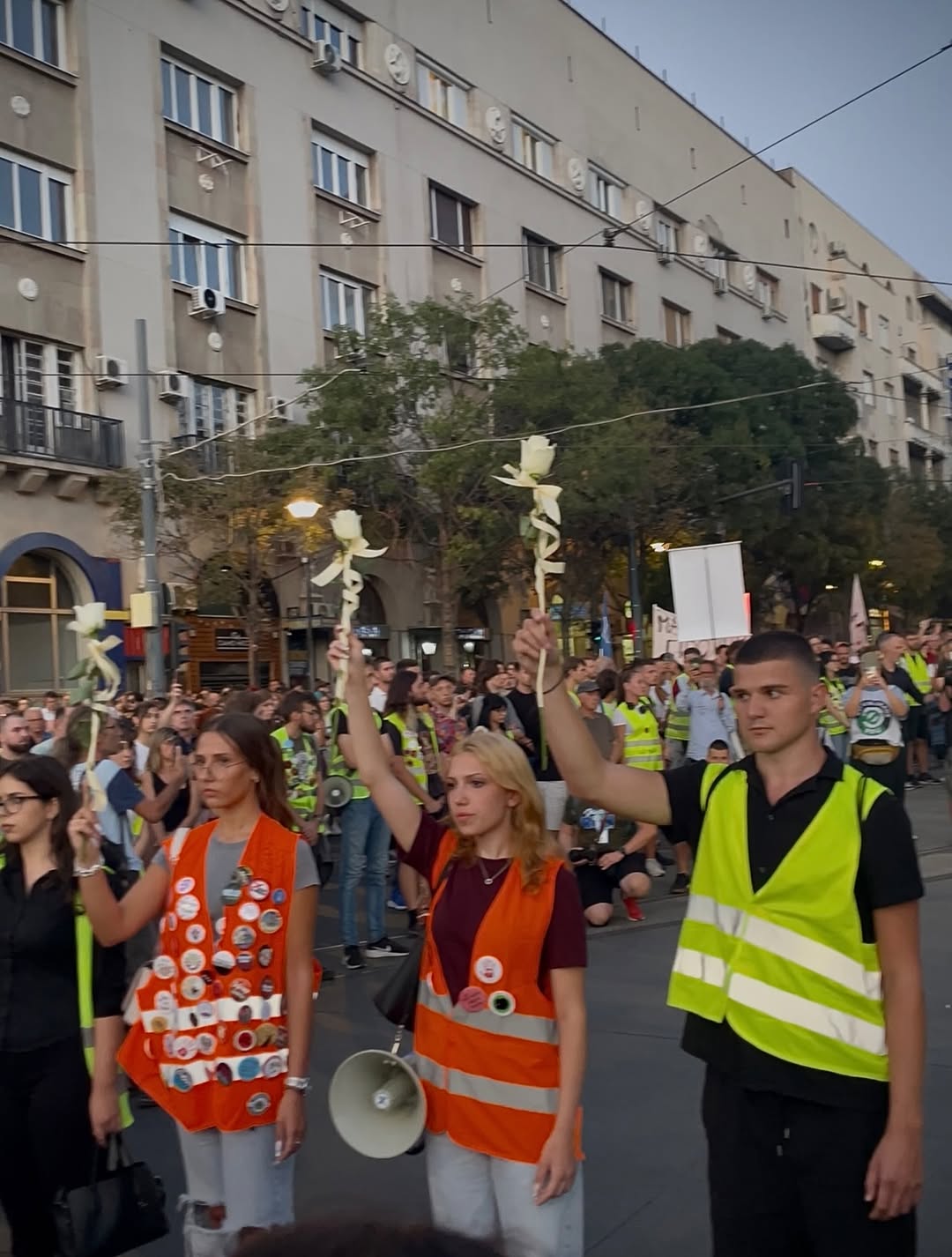 Демонстранти зібралися близько 19:00 перед старим залізничним вокзалом у Белграді. Також 16 гімназистів пройшли Савською площею, тримаючи в руках по білій троянді. При цьому зачитували імена загиблих унаслідок інциденту.