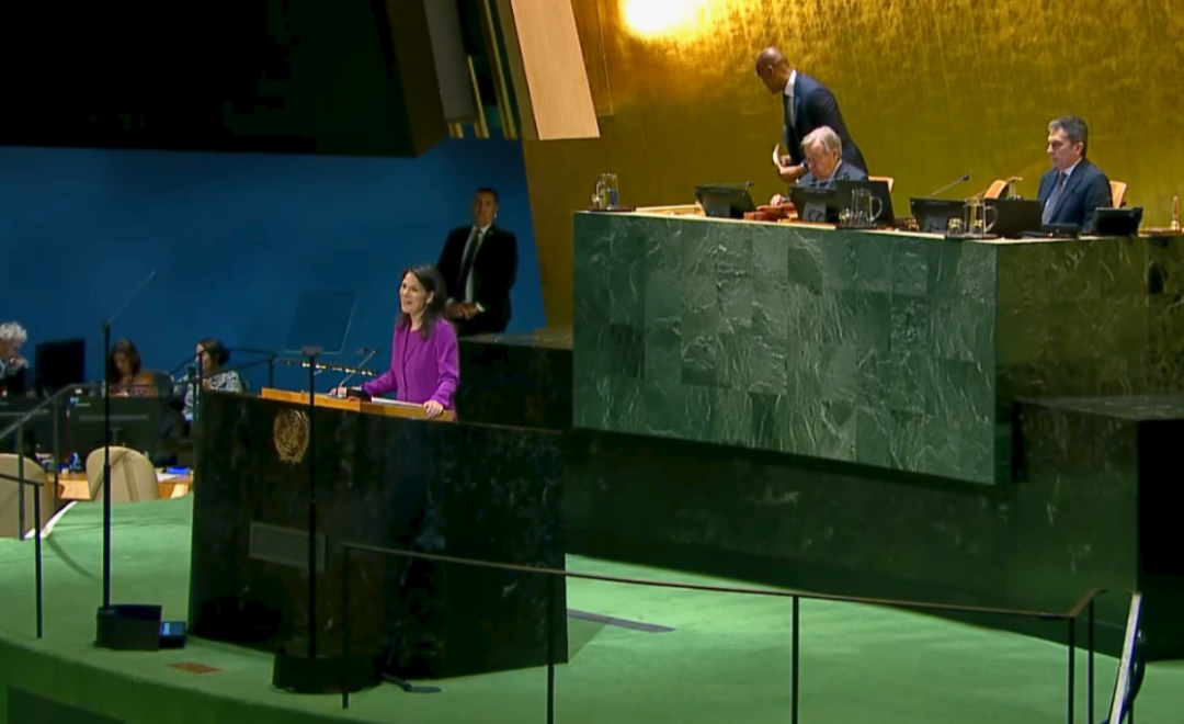 «Як і 80 років тому, ми стоїмо на роздоріжжі. І саме від нас — від кожної окремої держави-члена — залежить, чи відповідаємо ми тим самим лідерам, які були до нас, чи діятимемо, коли це необхідно, чи підтримуватимемо принципи нашого статуту, чи будемо кращими разом, чи покажемо людям у всьому світі, що ця Організація Об'єднаних Націй існує сьогодні, завтра і протягом наступних восьми десятиліть. Бо, зрештою, це страховка життя для кожної країни», - заявила Бербок і закликала уявити, наскільки гіршим був би світ без ООН.