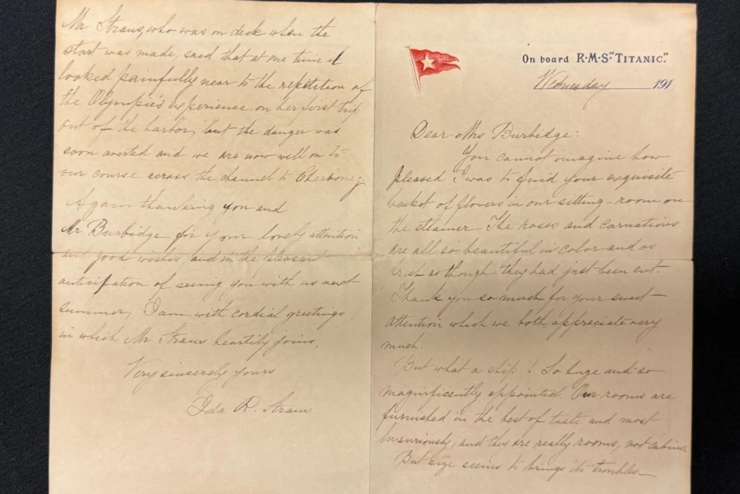 Годинник буде проданий разом із рідкісним листом, який Іда написала на борту лайнера, описуючи його розкіш. Лист має поштовий штемпель «TransAtlantic 7», що означає, що він був франкований на борту в поштовому відділенні «Титаніка», а потім відправлений разом з іншою поштою в Квінстаун, Ірландія.