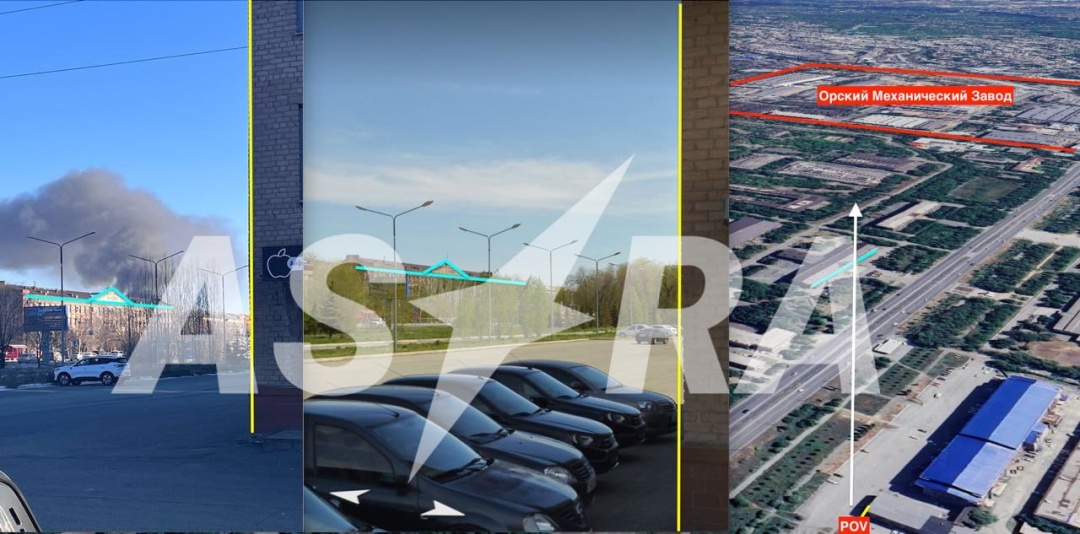 Як передає Укрінформ, про це повідомляє телеграм-канал Astra, який геолокував фото та відео пожежі в оренбурзькому Орську.
