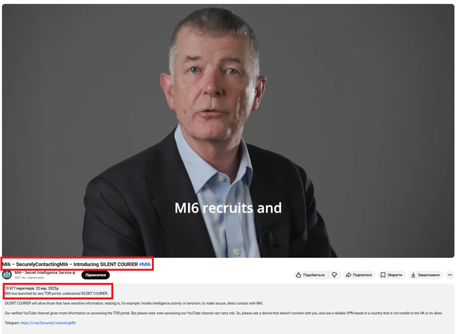 Це фейк. Поширене пропагандистами відео було змонтоване з кількох непов’язаних між собою роликів. Перша частина відео дійсно походить з офіційних медіаресурсів MI6, однак вона має зовсім інший посил і не стосується України. Оригінальний ролик був опублікований чотири місяці тому і в ньому фігурує вже колишній керівник служби Річард Мур. Зараз MI6 очолює Блейз Метревелі. На відео Мур звертається до громадян із закликом до співпраці з британською розвідкою та надає загальні рекомендації для цивільних осіб на тлі терористичних загроз.