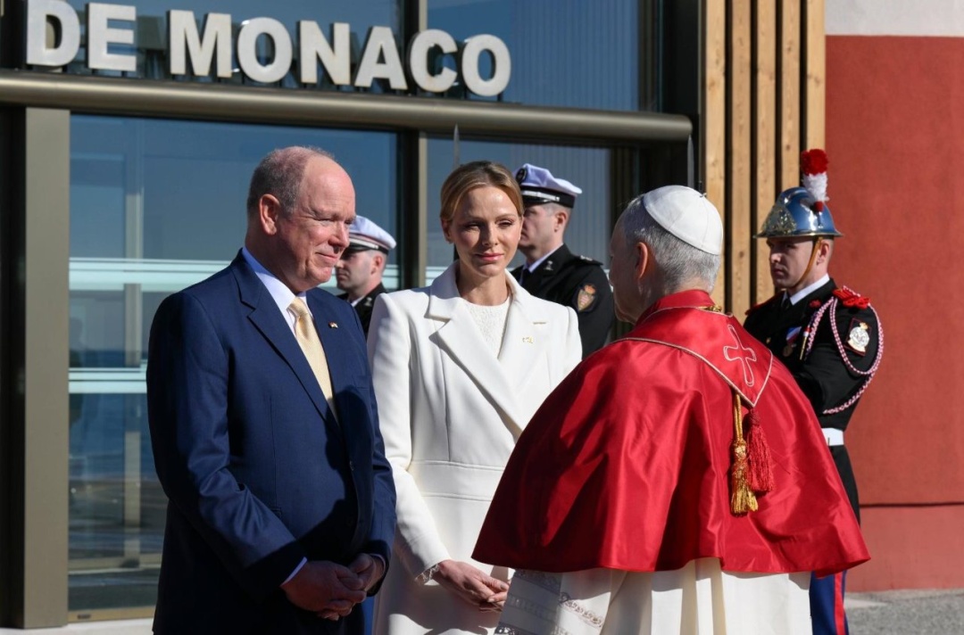 Папу зустріли князь Монако Альбер ІІ і княгиня Шарлен. Потім Папа і монархи вирушили до княжого палацу.